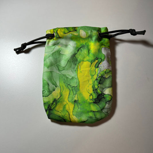 Green Tie-Dye Dice Bag with Paracord Draw String